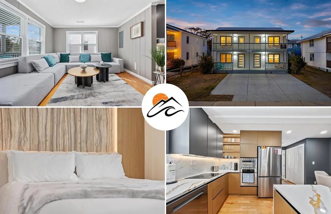 The 4-bedroom Elvi'S Beachside Getaway Myrtle Beach villa offers proximity to nearby tourist spots, such as the culturally relevant Barefoot Church, situated nearly 25 minutes' walk away.